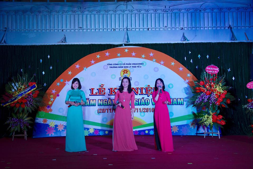 Ngày 18/11 cô và trò trường Mầm non Lý Thái Tổ 2 đã long trọng tổ chức lễ kỷ niệm 34 năm ngày Nhà giáo Việt Nam. Tới dự buổi lễ có bác Nguyễn Văn Tố - nguyên Chủ tịch HĐQL các trường Lý Thái Tổ, Đ/c Nguyễn Xuân Thuỳ - phó Chánh VP, Bí thư Đoàn TN TCT Vinaconex, Đại diện BPH Nhà trường, BPH lớp các thời kỳ và toàn bộ các CB, GV, NV trong trường đã có mặt đông đủ.
