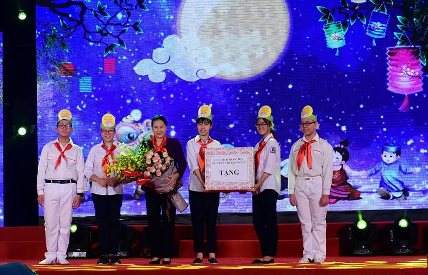 Tối 20/9, tại quận Hoàng Mai, UBND thành phố Hà Nội tổ chức chương trình “Đêm hội trăng rằm 2018”. Chủ tịch Quốc hội Nguyễn Thị Kim Ngân tới dự và tặng quà cho thiếu nhi Thủ đô.